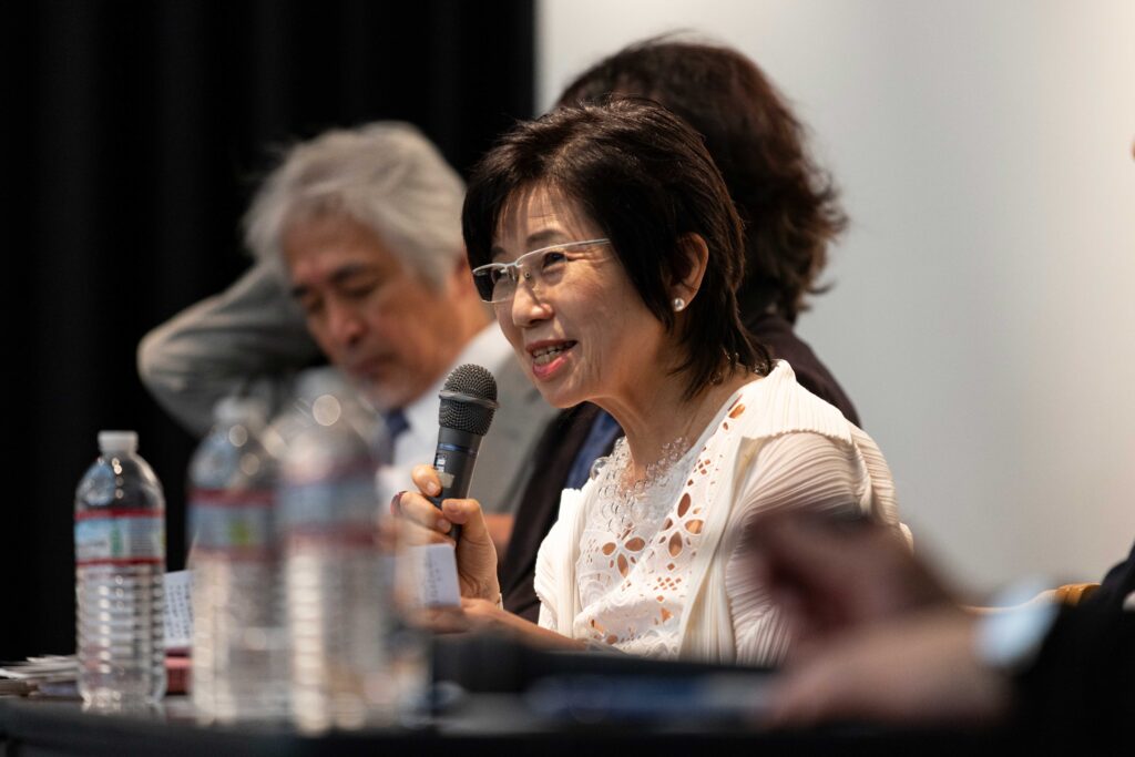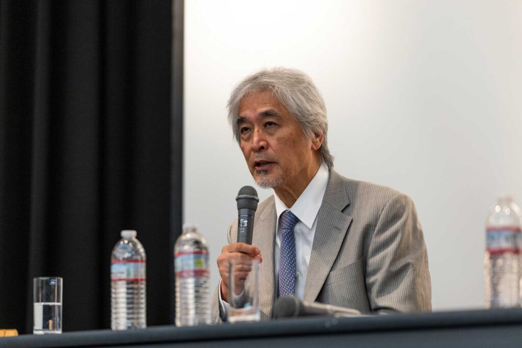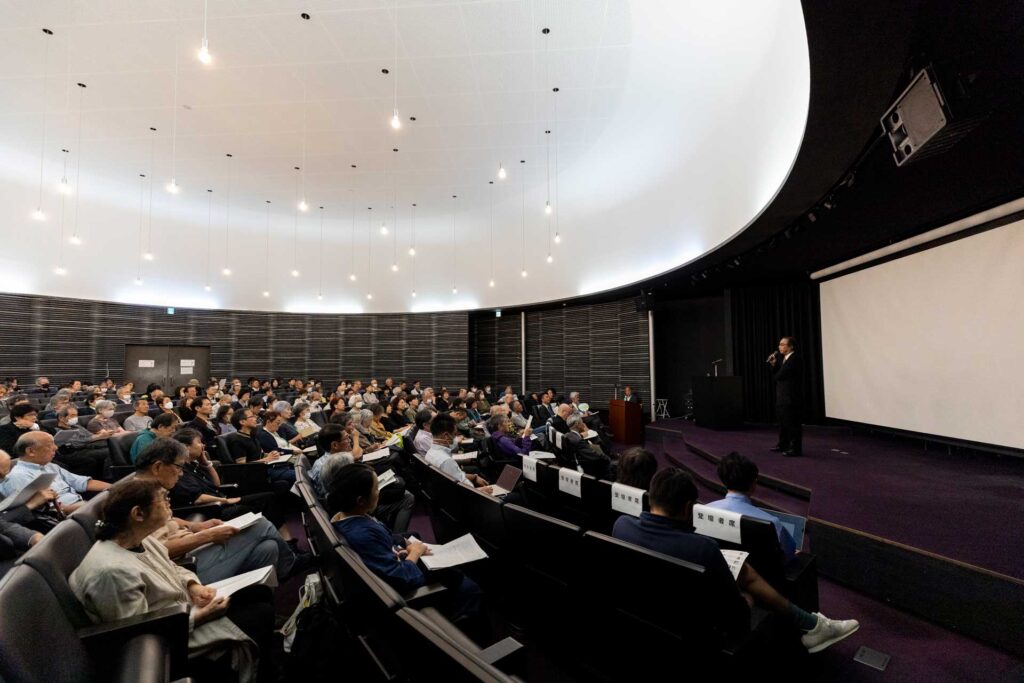 会場とオンライン計400名が参加。梅原哲学の「はじまり」と「これから」をテーマに、世代を超えた講師2名のスピーチの後、創設された「梅原猛人類哲学賞」選考委員による座談会「『人類哲学』とは何か」が行われました。